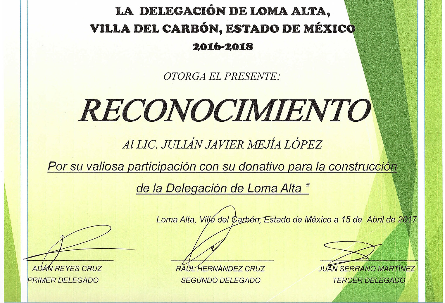 En septiembre de 2015 mi esposa y yo nos mudamos a radicar a la colonia Loma de Trojes, ubicada en la localidad de Loma Alta, Villa del Carbón, donde comenzamos a participar activamente en las necesidades de la comunidad.