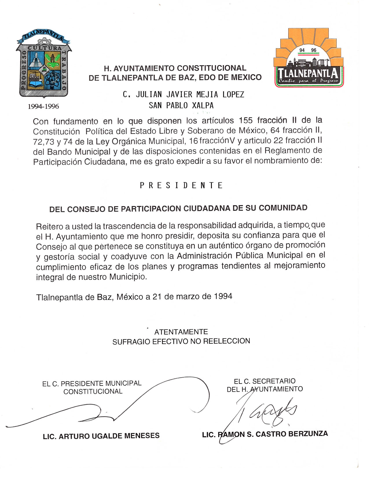 Los niños de San Pablo Xalpa jugaron un papel importante en la mejora de los servicios e imagen de mi pueblo, pues, entre juegos y trabajo, juntos transformamos nuestra comunidad. En esta época, mi participación directa forjó en mi una verdadera conciencia social en pro de mis vecinos y de mi comunidad. Aprovecho la oportunidad para reiterarles mi agradecimiento por su apoyo y a quienes ya no están en este plano terrenal, con orgullo honró su memoria y muestro su legado de participación.